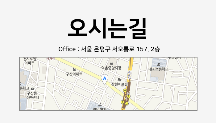 주소 : (03412) 서울 은평구 서오릉로 157 (구산동) 유성빌딩 2층